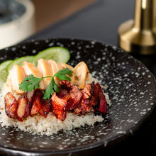 BBQ sauce-glazed pork with aromatic rice, served with our house-made Thai spicy dipping sauce