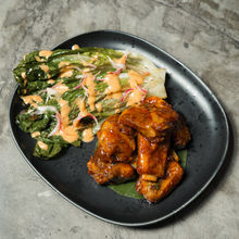 Spoon tender, easily fall of the bone pork ribs glazed in dark caramel honey sweetness, sour from tamarind, salty & umami from our Thai sauces blend. Paired with chargrilled rommaine lettuce